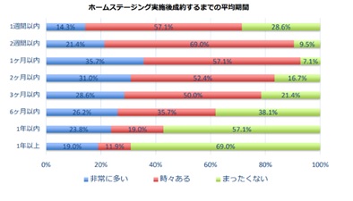 リアルホームステージングですと、家具等の選択、購入、搬入、設置は時間掛かり、早くて1週間、長い時は1ヶ月以上かかるケースもあります。