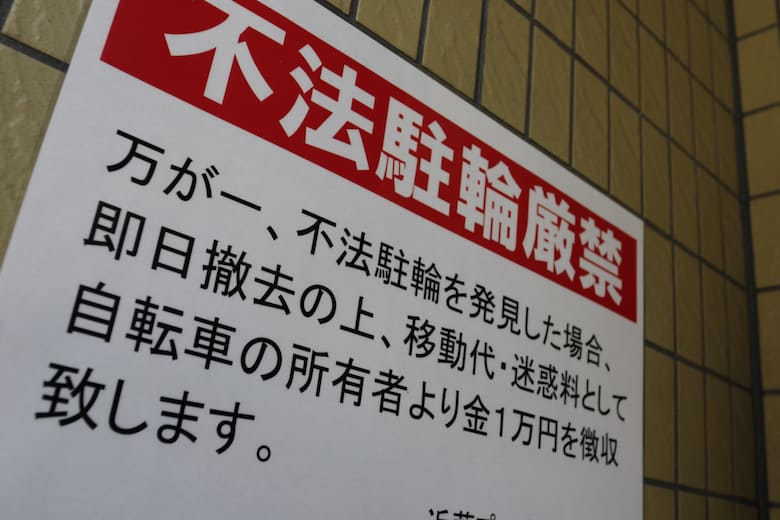 駐輪場の目立つ位置に看板や貼り紙で、無断駐輪は不法侵入として警察に通報する旨の警告を示しておくと、抑止効果が期待できるでしょう。
